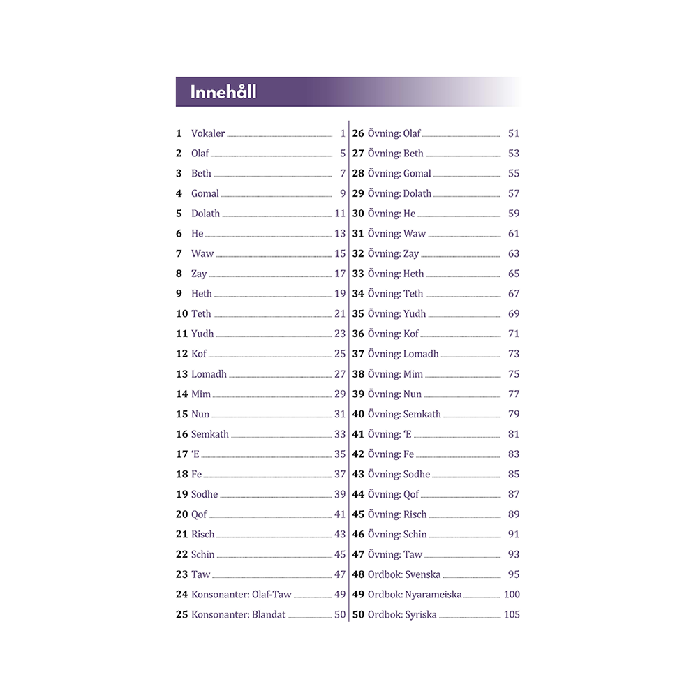 Im Aramäisch Lehrbuch 1 geht es hauptsächlich um das Alphabet. Es beginnt mit dem Lernen der Vokale und führt systematisch in die Konsonanten ein – jeweils mit Wort und Bild. Enthält Übungen zur Buchstaben- und Worterkennung sowie ein komplettes Wörterbuch aller im Buch vorkommenden Wörter. -