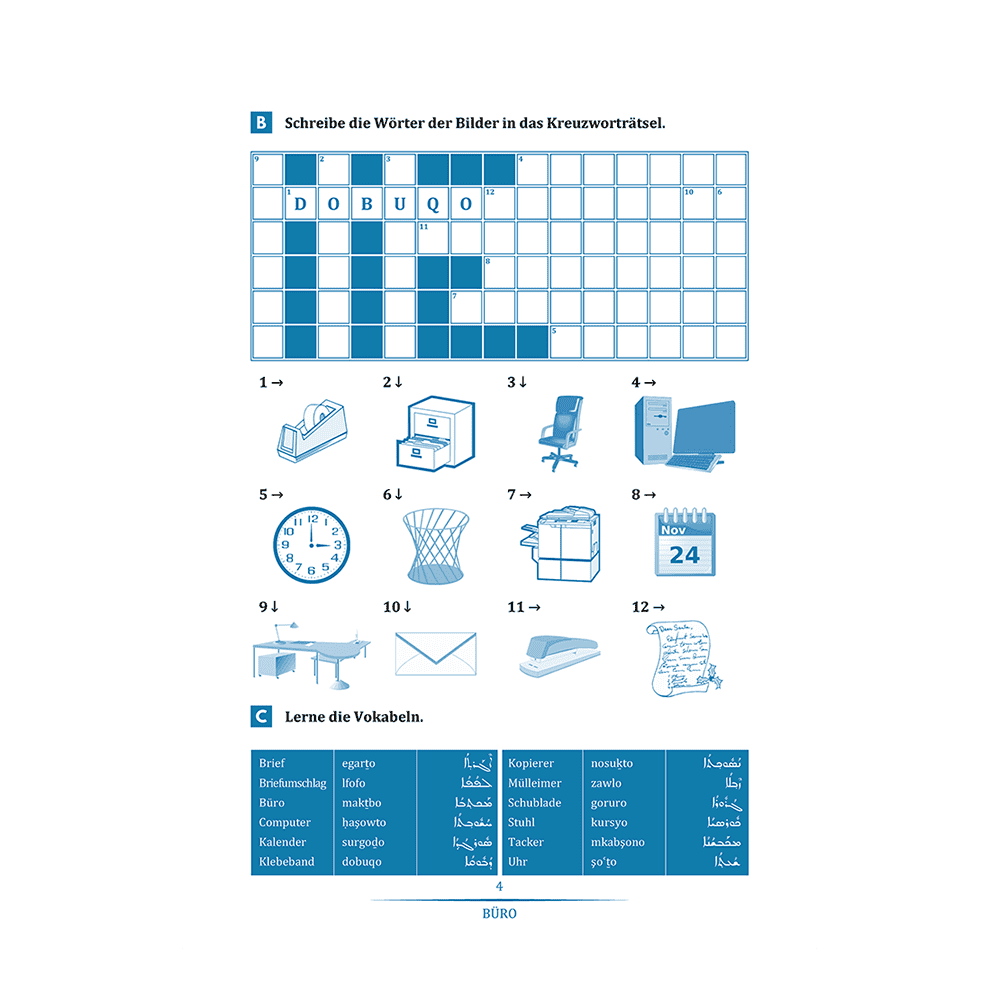 Das Buch enthält 30 Lektionen mit Vokabeln und Bildern und 4 Tests sowie viele unterhaltsame und motivierende Übungen, um den Schülern das Lernen auf einfache und strukturierte Weise zu erleichtern.