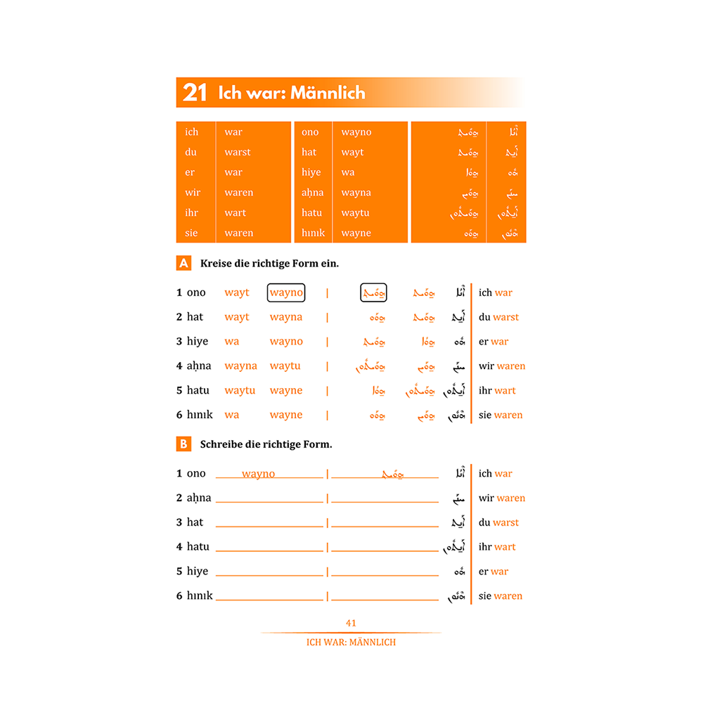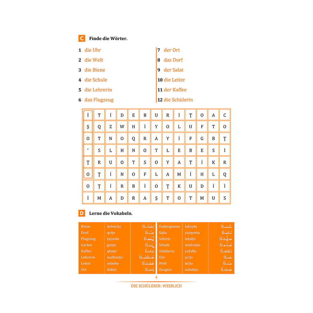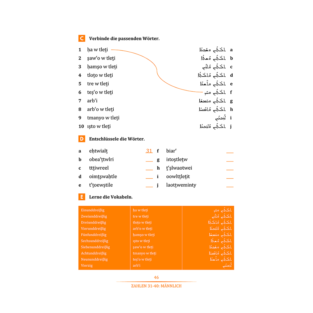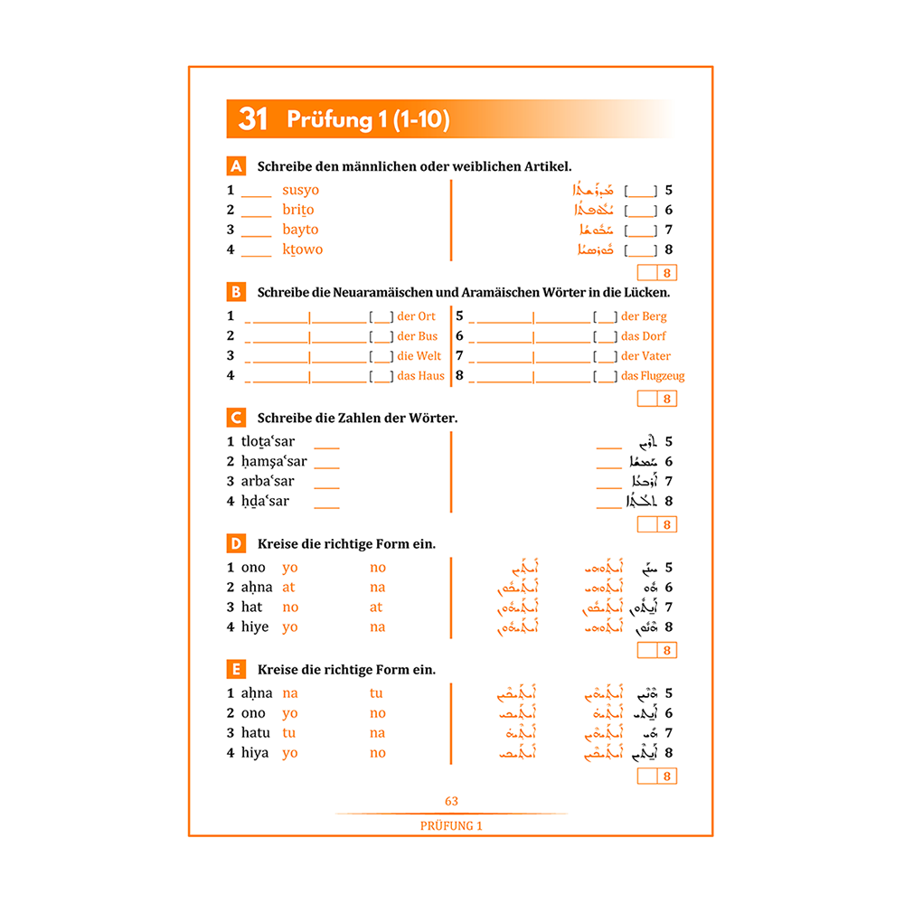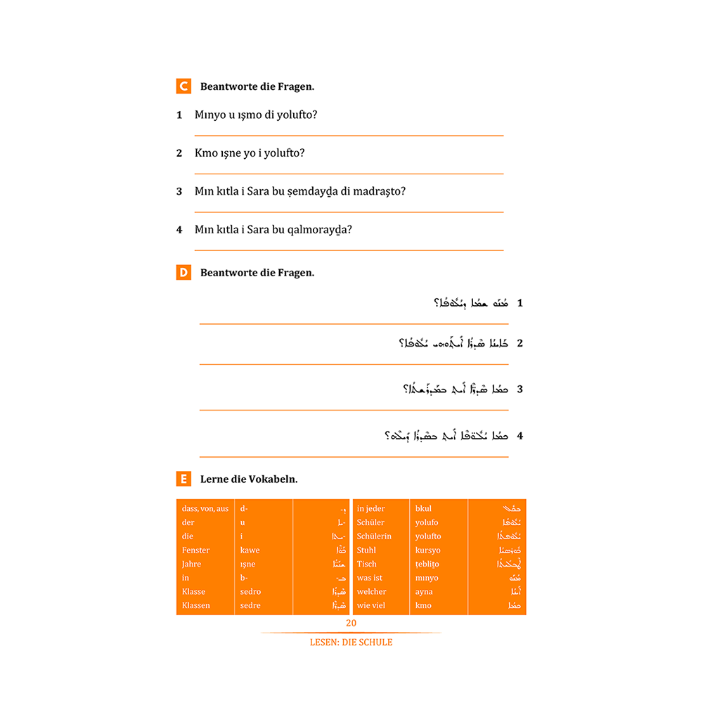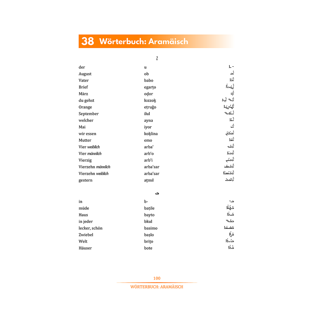 Das Buch enthält auch einen Lösungsschlüssel zu den Übungen in einem separaten Kapitel und endet mit Wörterbüchern in Deutsch, Neuaramäisch und Syrisch (Aramäisch).
