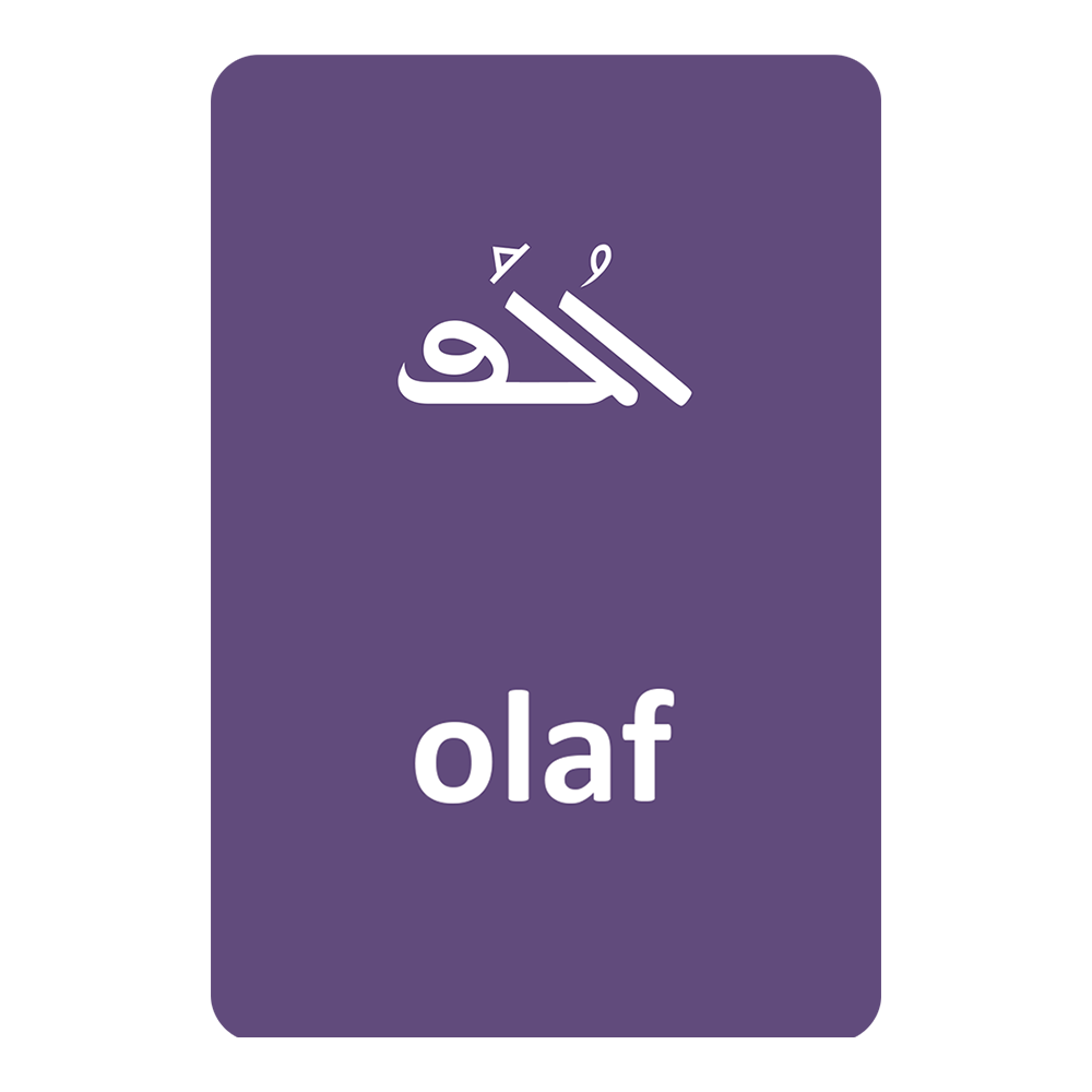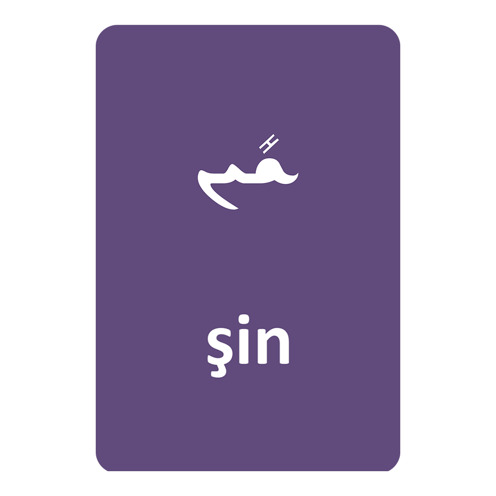 Jedes Kartenpaar besteht aus einem syrischen Buchstaben und dem Namen der Figur (auf Syrisch und Neuaramäisch).