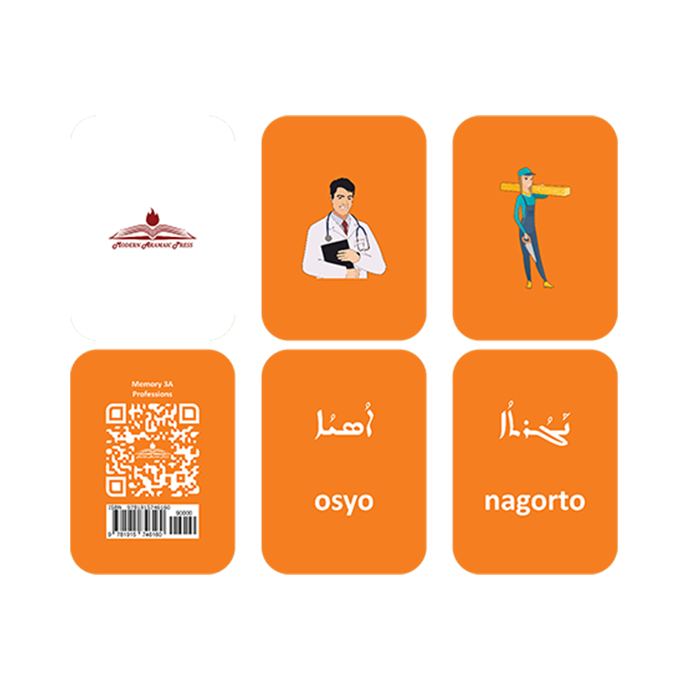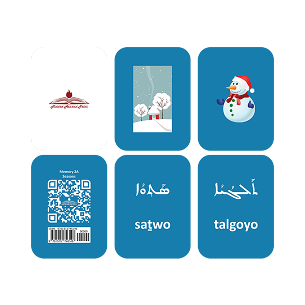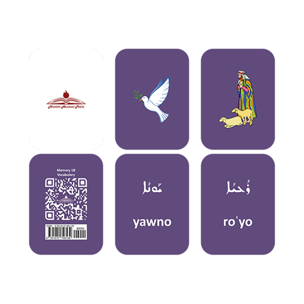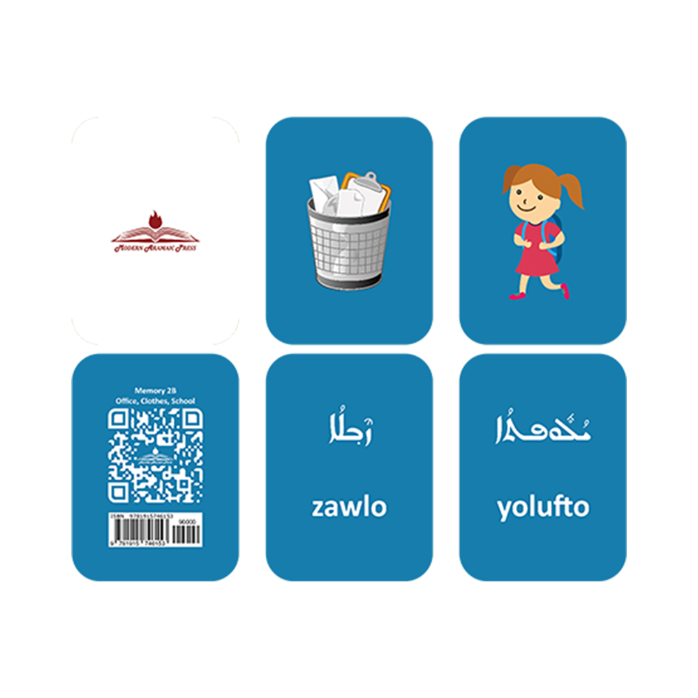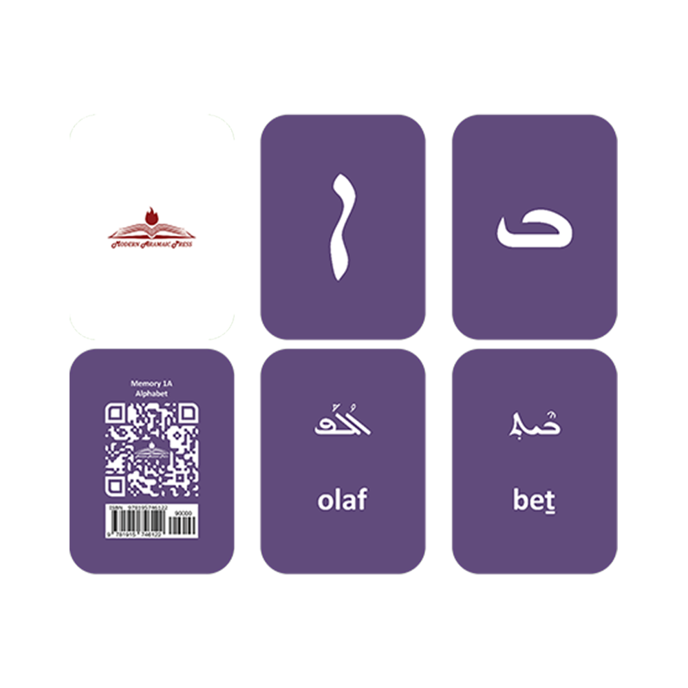 55 Karten mit aramäischem Alphabet. Jedes Paar enthält einen Buchstaben und den Namen der Figur auf Aramäisch/Neuaramäisch.